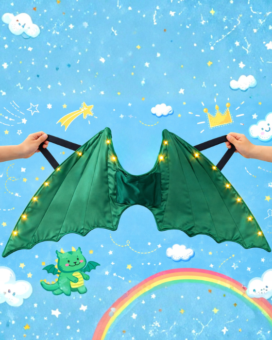 Aripi de Dragon cu luminițe spectaculoase care transformă orice copil într-un supererou plin de energie! Acestea sunt perfecte pentru petreceri, carnavaluri sau pur și simplu pentru joacă în fiecare zi. Cu luminițe fascinante care clipesc și strălucesc, aripioarele captivează atenția și creează momente magice. Ideale ca și cadou pentru băieții care iubesc aventurile și imaginația fără limite. Confortabile și ușor de purtat, garantează distracție nesfârșită și zâmbete largi la fiecare eveniment special.