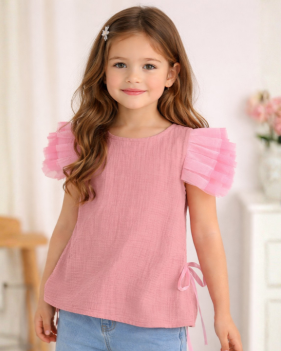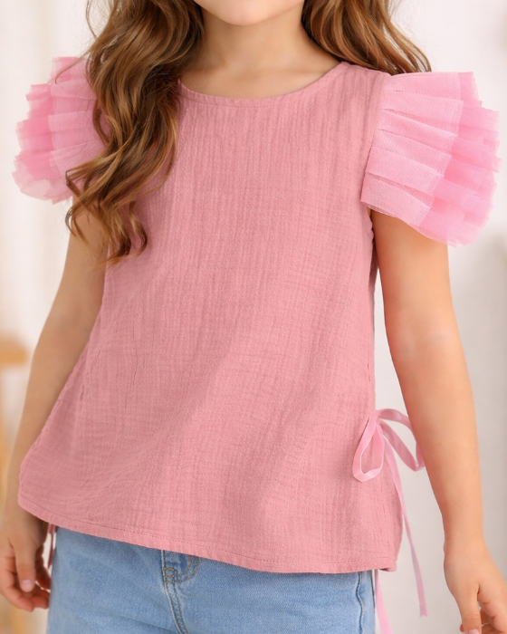 Bluziță Roz cu Volănașe de tulle, De Printesa