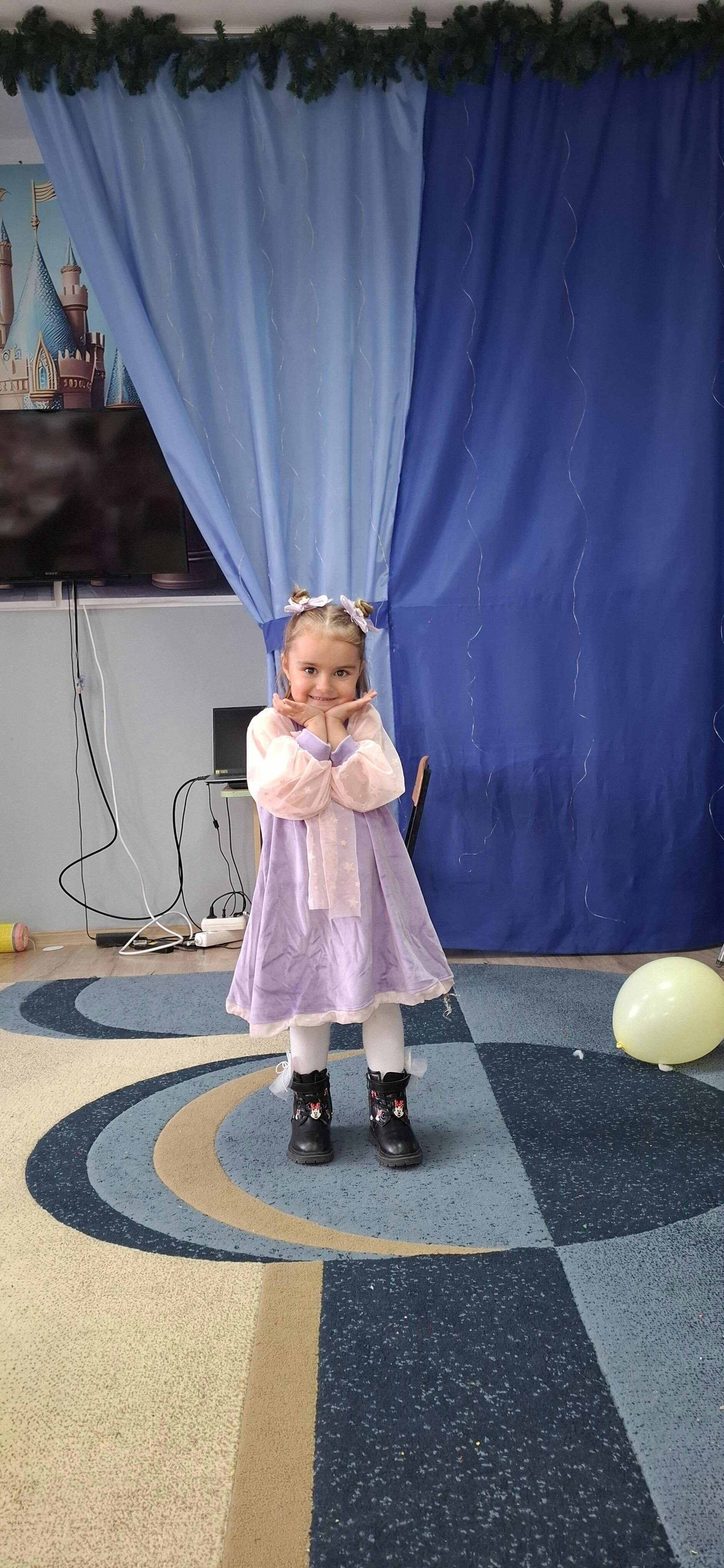 Material super soft: catifea fină si placută la atingere. Rochiță cu mânecă lungă bufantă din tulle cu steluțe foarte moale si fin.