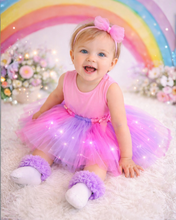 Fustița cu Luminițe, Unicorn este perfectă pentru fetițele care visează în culori pastel și magie! Confecționată din material moale și confortabil, aceasta prezintă un design adorabil cu motive unicorn și detalii strălucitoare care capturează imaginația. Luminițele integrate adaugă o notă de farmec suplimentar, transformând fiecare mișcare într-un spectacol plin de culoare. Ideală pentru petreceri, jocuri în aer liber sau pur și simplu pentru a-și exprima personalitatea magică. Fustița este ușor de purtat și de îngrijit, asigurând confort pe toată ziua.