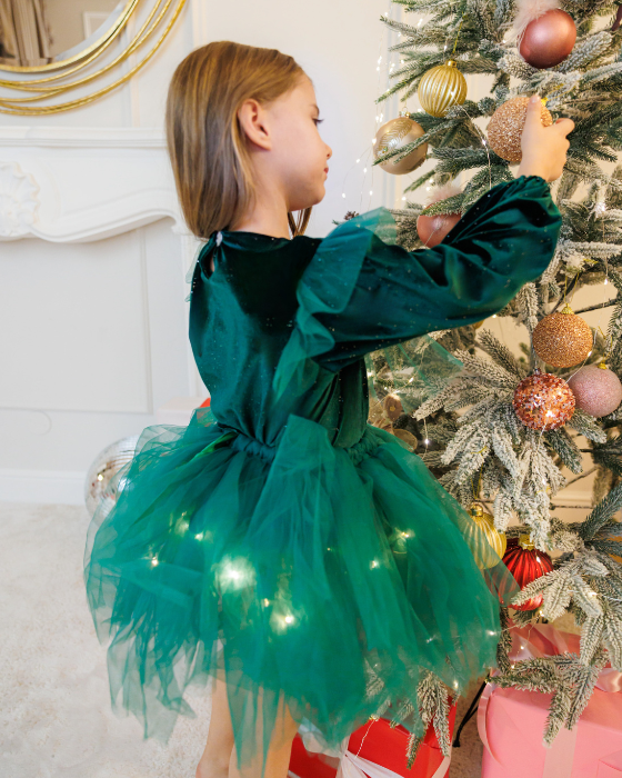 Cu fustița sa fermecătoare, bluzița asortată și bentița elegantă, acest set aduce cu el spiritul autentic al Crăciunului.Un set perfect pentru a crea amintiri de neuitat și pentru a aduce atmosfera magică a Crăciunului în fiecare zi specială.