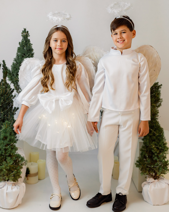 Când comandați un costum care conține si o fustiță, la mărimea 3-4 ani sau 5-6 ani veți primi fustița de 3-5 ani (98-116 cm).