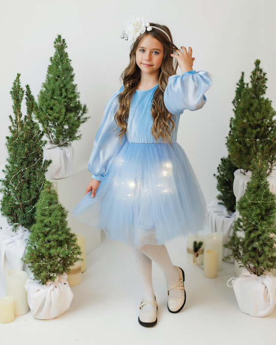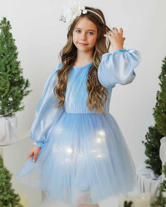 Rochita cu Luminite Bleu de catifea superba Cadou de Craciun