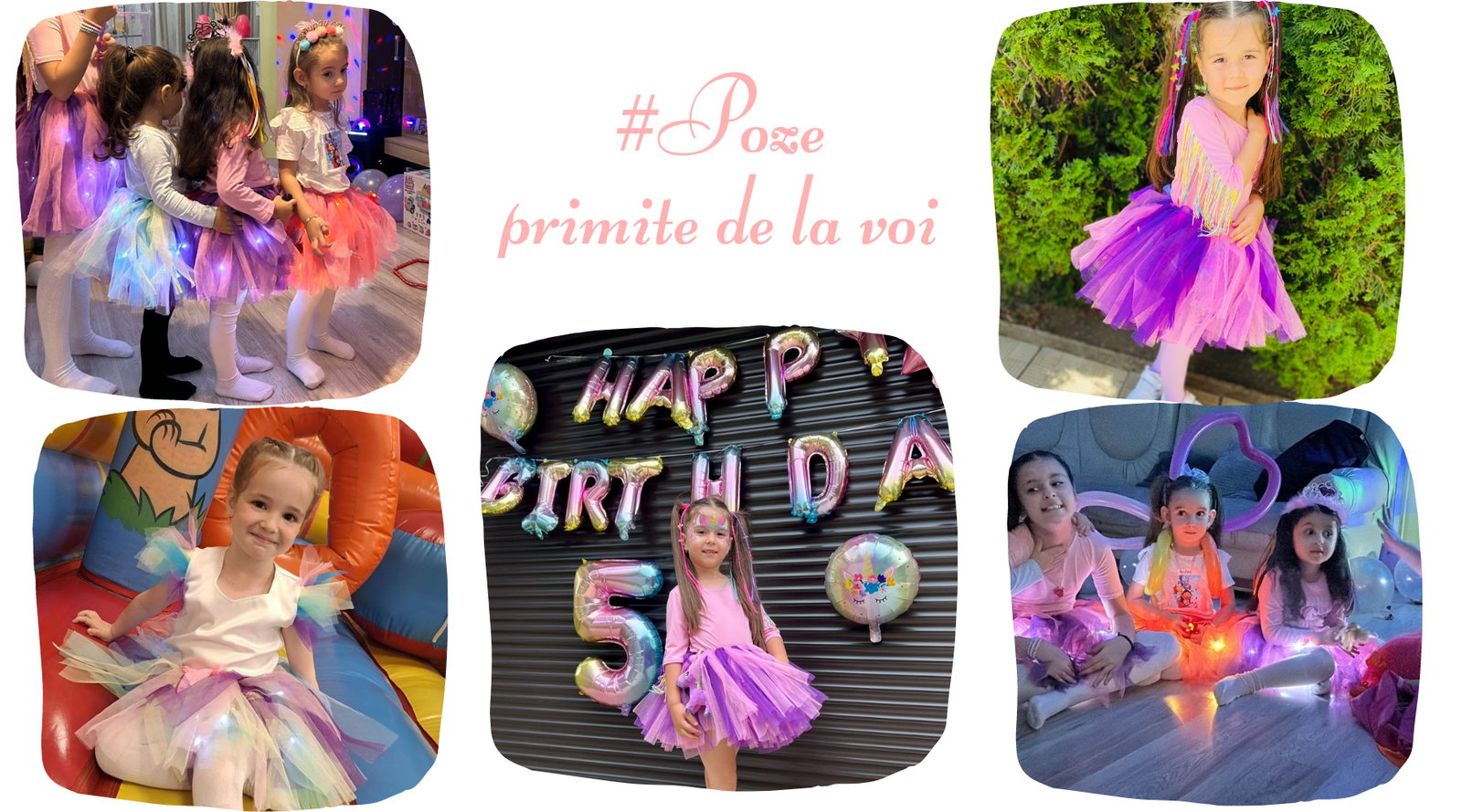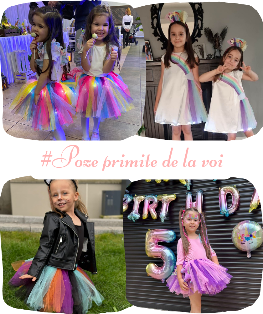 Am comandat fustita de ziua fetitei mele si nu a mai dat-o jos 2 zile dupa ce a primit-o . Este foarte frumos lucrata si design-ul este chiar deosebit. Livrarea a fost prompta si am primit-o foarte frumos ambalata.