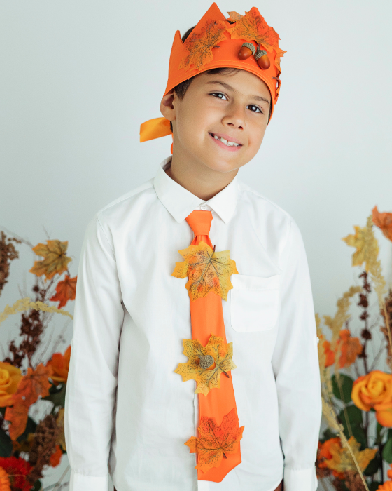 Ca o rază portocalie, această cravată adaugă strălucire și demnitate micilor regi.